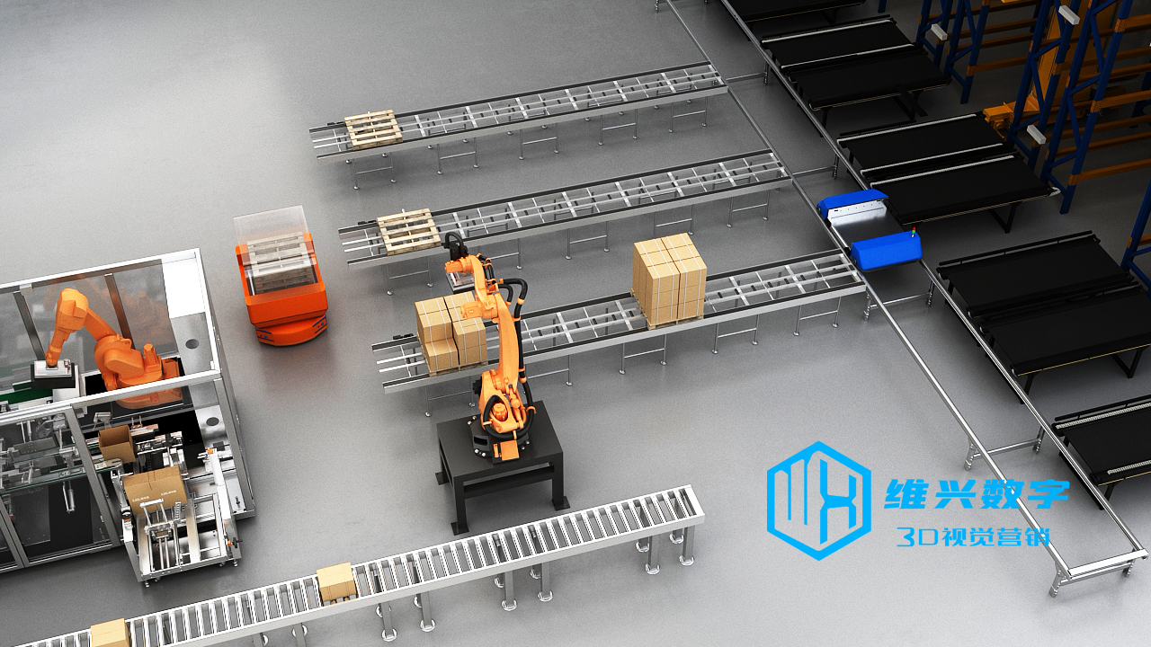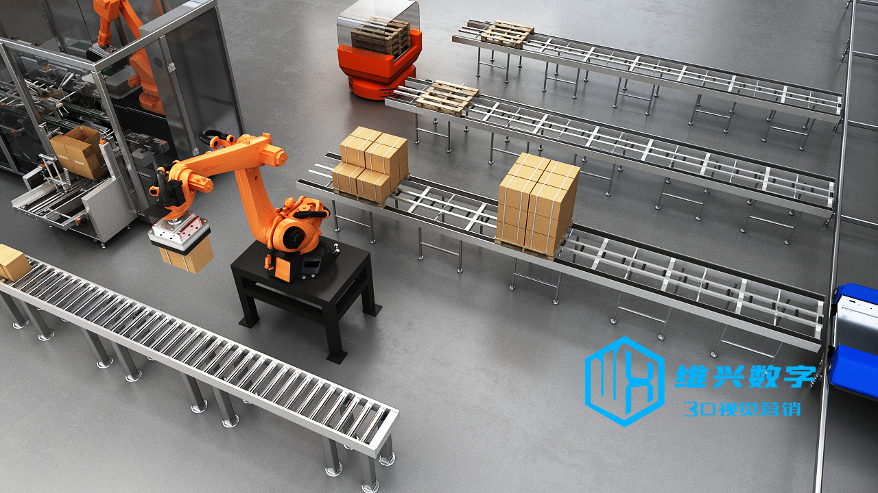 工业三维动画,三维机械动画,封箱机器人码垛-工业自动化动画视频_机械生产线动画_工业机器人动画图片